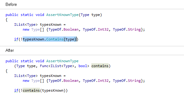 If an expression uses local variables that are inaccessible at a call site, this refactoring allows to pass them as delegates.