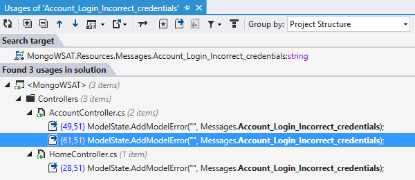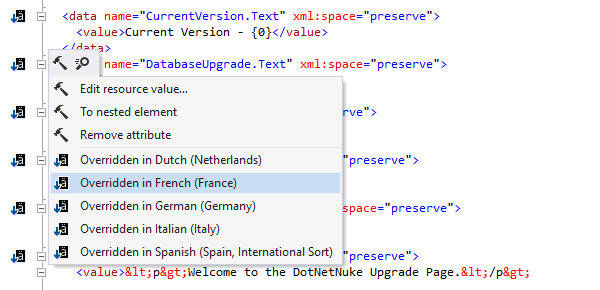 ReSharper saves time spent on internationalization with its refactorings, navigation, code inspections and quick-fixes for resx files and resource usages in C# and VB.NET code, as well as in ASP.NET and XAML markup.