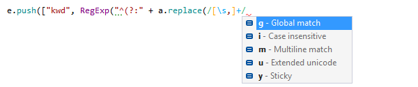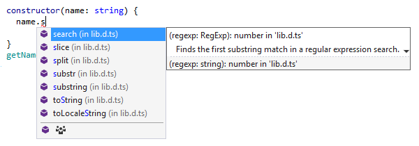 Code completion features help you write JavaScript/TypeScript code faster. While you type, ReSharper analyses the surrounding context and symbols you recently entered in order to suggest suitable values in the completion list. For example, ReSharper can help you find built-in JavaScript methods and properties, as well as symbols from JavaScript libraries referenced in the current project.