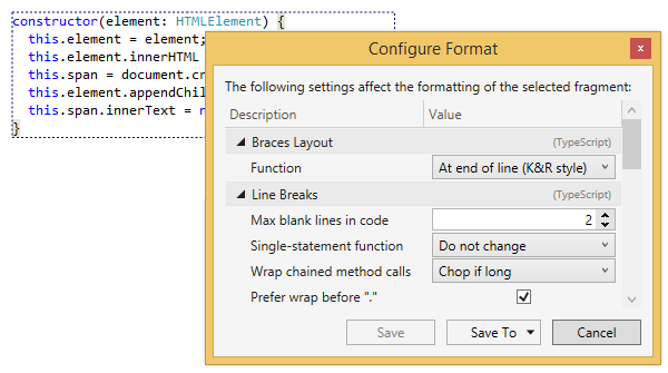 ReSharper helps you automatically maintain the two cornerstones of code style in JavaScript and TypeScript code: code formatting rules and naming conventions.