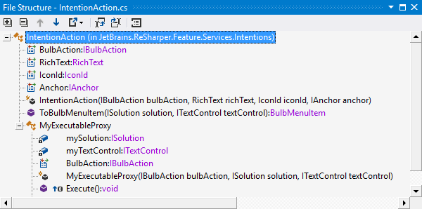 File Structure window is available for all supported languages and file types, In C# or VB.NET files, you can see what methods, fields, classes, and regions they contain, as well as navigate directly to their declarations — just press Ctrl+Alt+F.