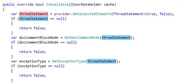 Building patterns and enforcing good practices has never been this easy. Corporate and team policies, custom frameworks, favorite open source libraries and tools — structured patterns are able to cover them all. As a bonus, you can import and export best patterns to share them with colleagues or move between ReSharper installations.