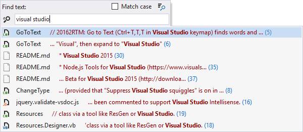 To quickly navigate to a particular method or field in the current file, use the Go to File Member command that is available by pressing Alt+\. Same as with Go to Type, start typing the symbol name and then select from the list of matching members. This feature works with file members from all supported languages.