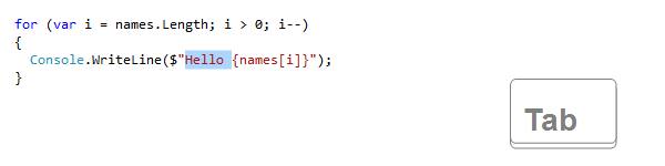 ReSharper allows using Tab and Shift+Tab keys to jump between logical pieces of your code, similar to how you navigate in your web browser.
