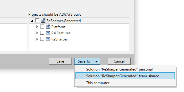 By default, there are three setting layers: for all solutions in local computer, for the current solution, and for the shared solution settings. You can easily create, manage, and share new layers, e.g. for global company-wide settings.