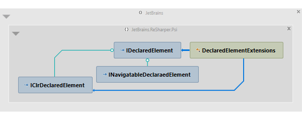 ReSharper allows you to visually study how types depend on each other in your solution. In the type dependency diagram, you can add any number of types from different projects or compiled assemblies and visualize different kinds of dependencies between them. Besides the main menu command, ReSharper | Architecture | Show Type Dependency Diagram, there are plenty of ways to add types to the diagram: e.g. you can add all types from the Find Results or Hierarchy window, from pop-ups showing navigation results, from the project dependency diagram, drag-n-drop types from other tool windows, and more.