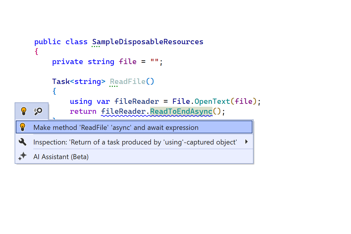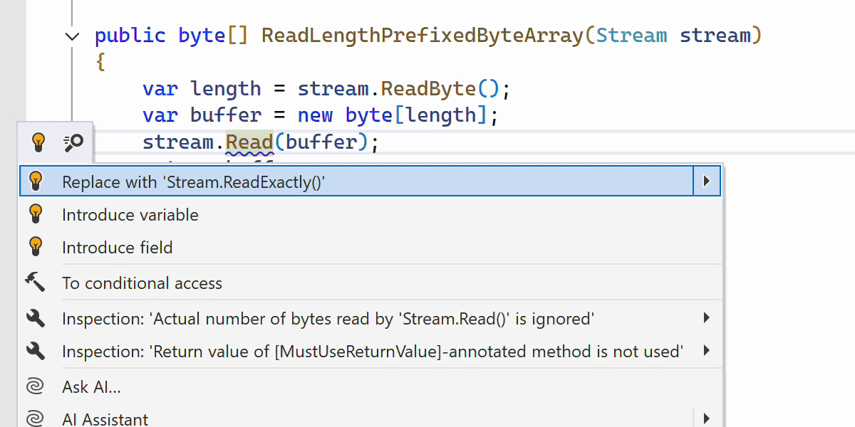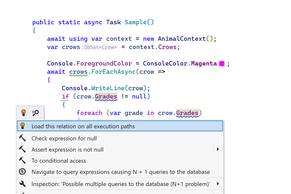 Last, but not least, new inspections, quick-fixes, and context actions are available to help you smoothly transition back and forth between classic extension methods and the new syntax.
