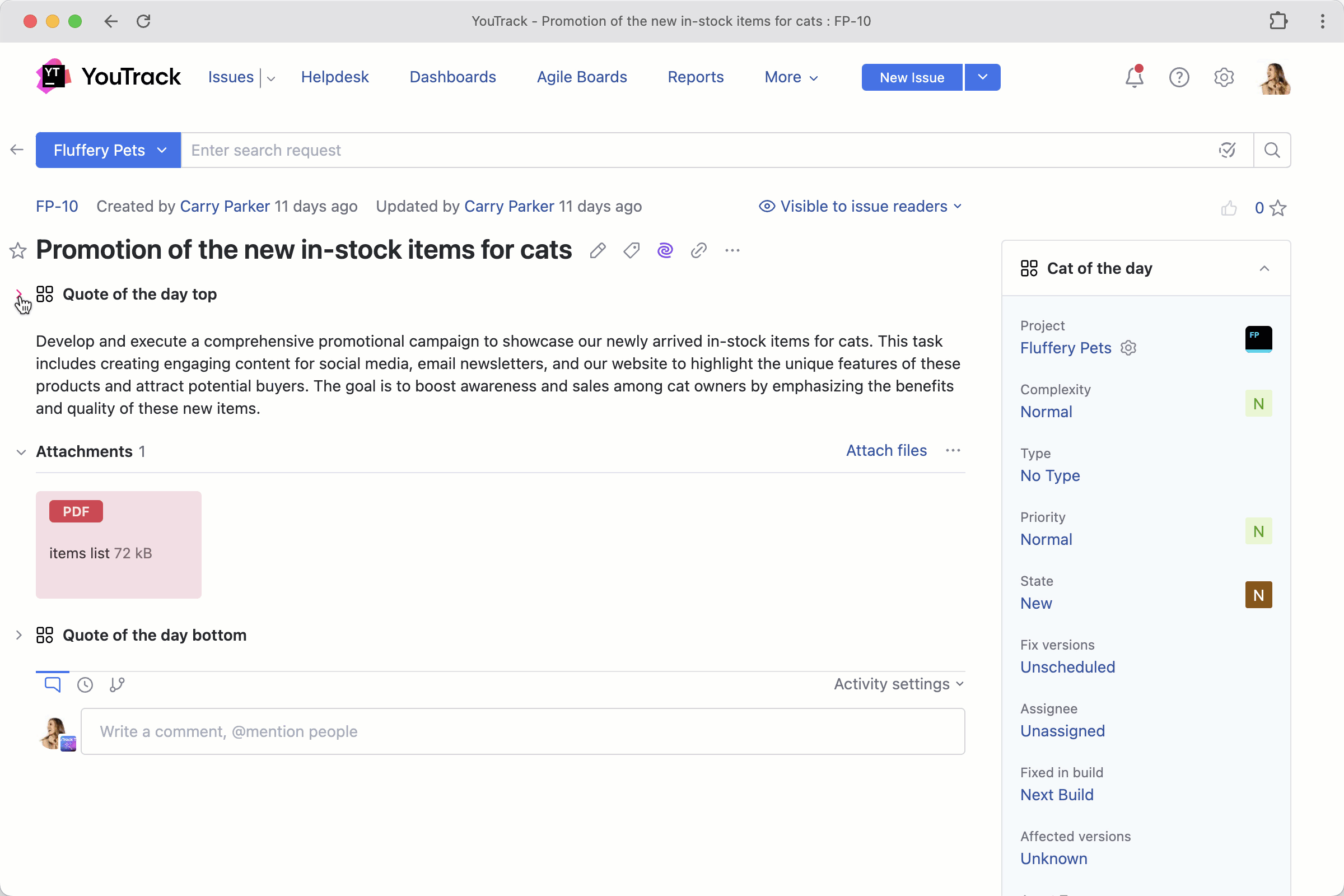 AI-powered text-to-issue transformation lets you easily create new tasks out of any piece of text.