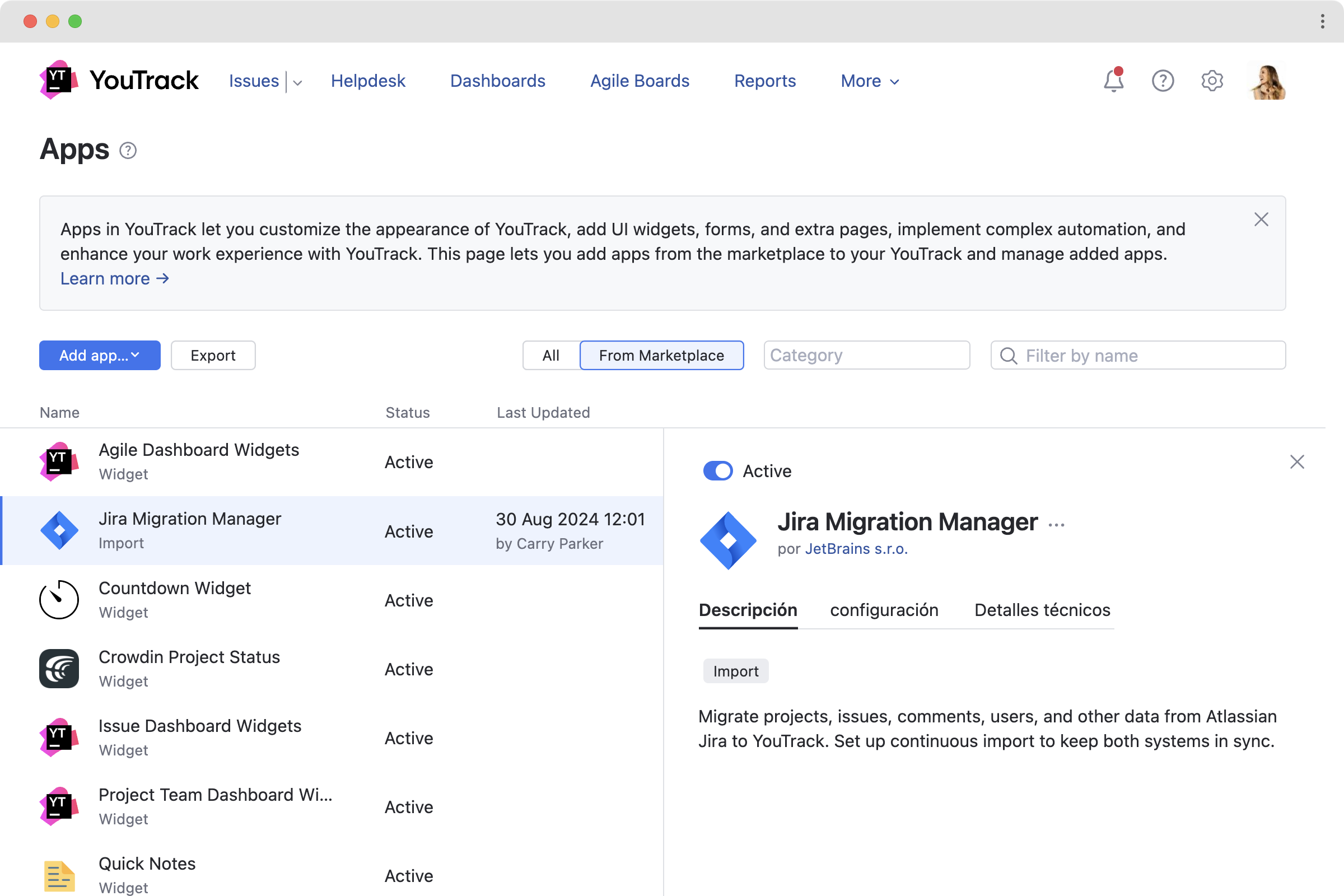 You will find several preinstalled apps in YouTrack that import content from other systems and add some popular workflows and widgets to your dashboards.
