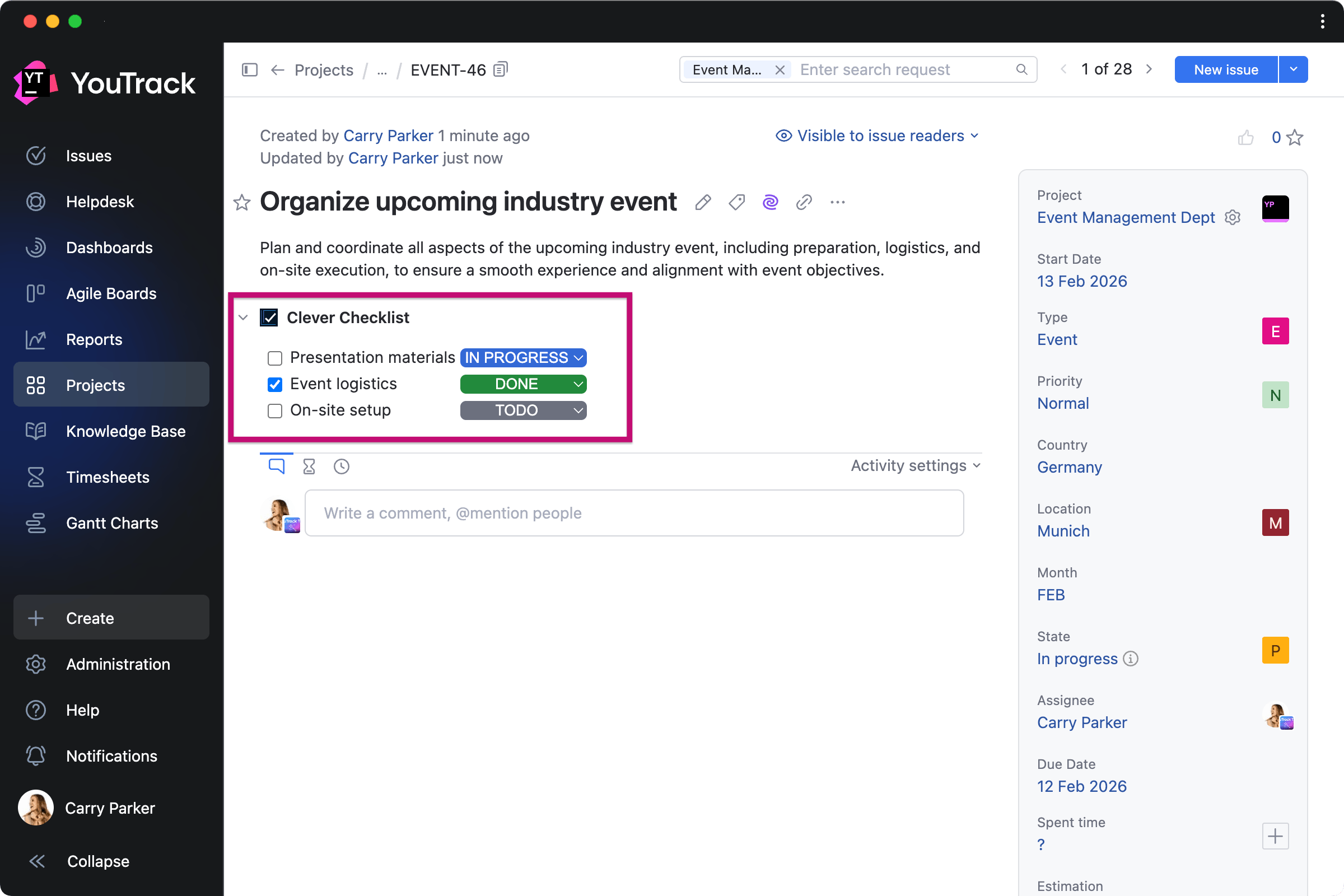For teams working from their existing LLM, IDE, or agent platform, we’ve expanded the number of predefined actions available via YouTrack’s remote MCP server. You can now use AI-powered tools to find, create, and update Knowledge Base articles and create tasks with pre-configured visibility.