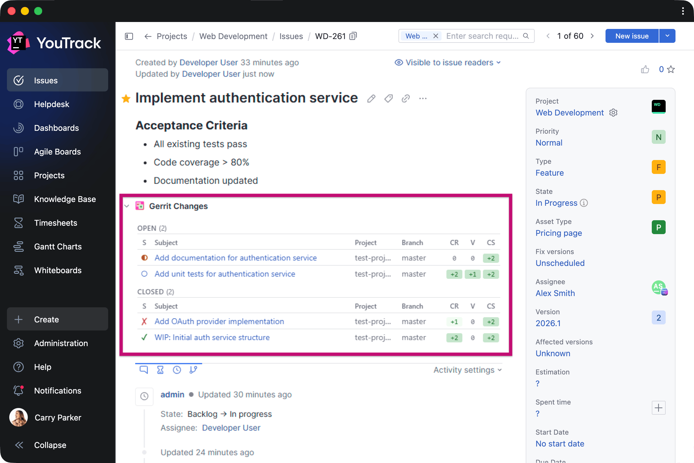 Gerrit Integration by Phoenix Systems Integration Task widget