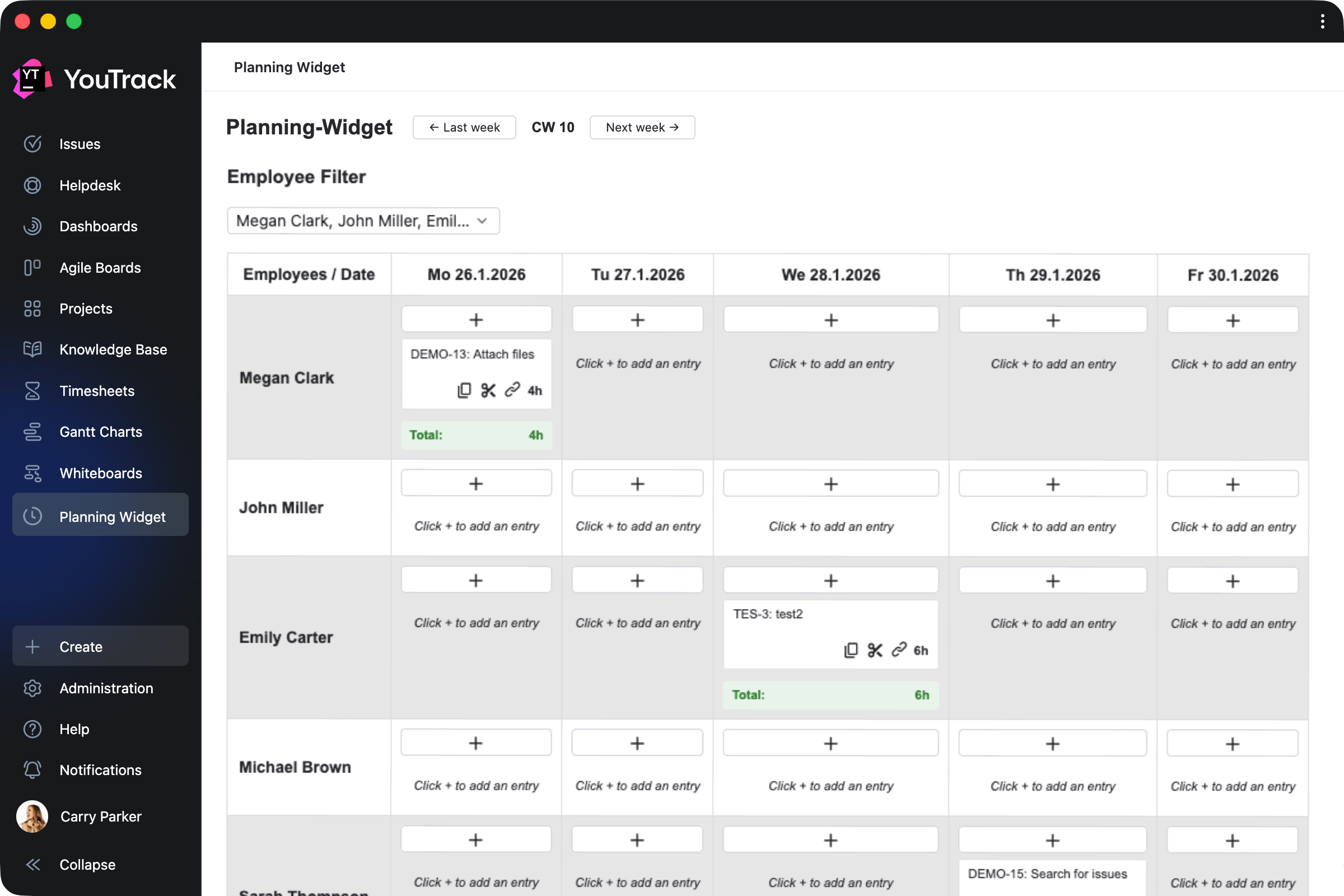 This app helps managers plan team activities in a calendar view. Review the tasks and tickets your team members work on each day, track time spent, and filter the view by employee.