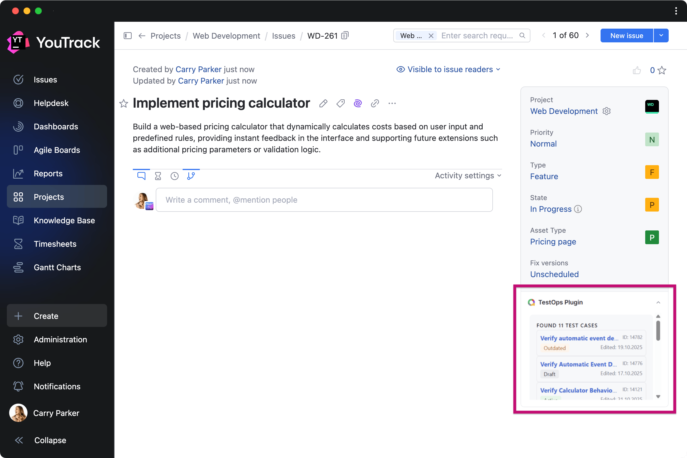 This app helps DevOps teams to stay on top of testing while developing features. It brings recent test cases from Allure TestOps directly into related tasks.