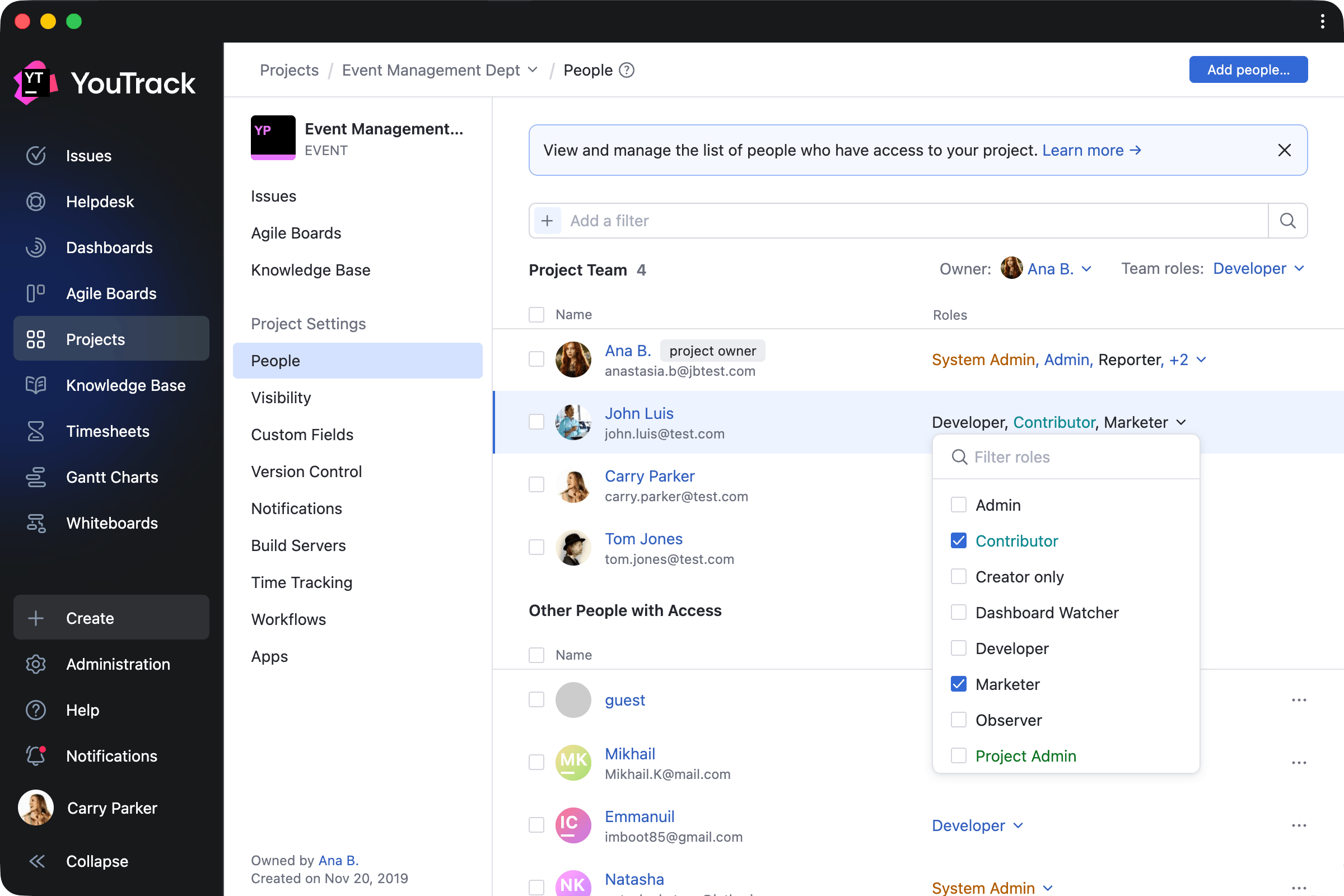 Managing project access is now simpler. From the new People tab on the project overview page, administrators can add or remove users and groups, assign roles, and filter team members by permissions – all without having to jump between pages.