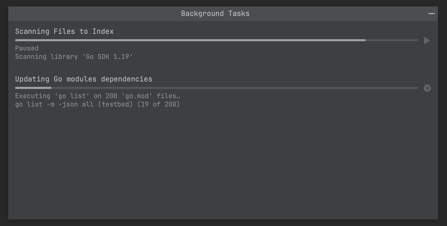 现在,打开项目时,go list 报告的信息将被保存到磁盘缓存。 再次打开该项目时,项目结构相关数据将从内存加载并在索引编制开始时被纳入考量。