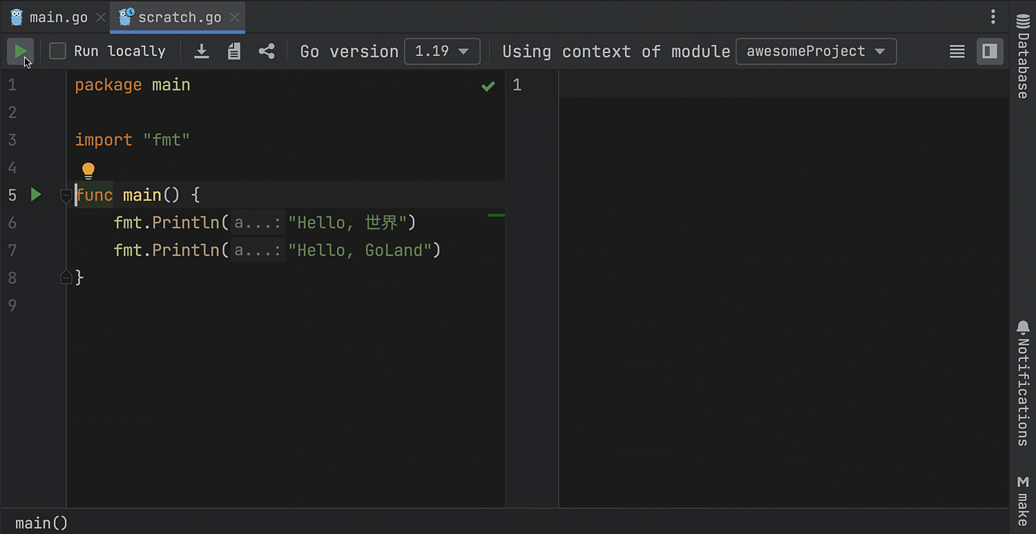 我们在 GoLand 中集成了 Go Playground 功能。