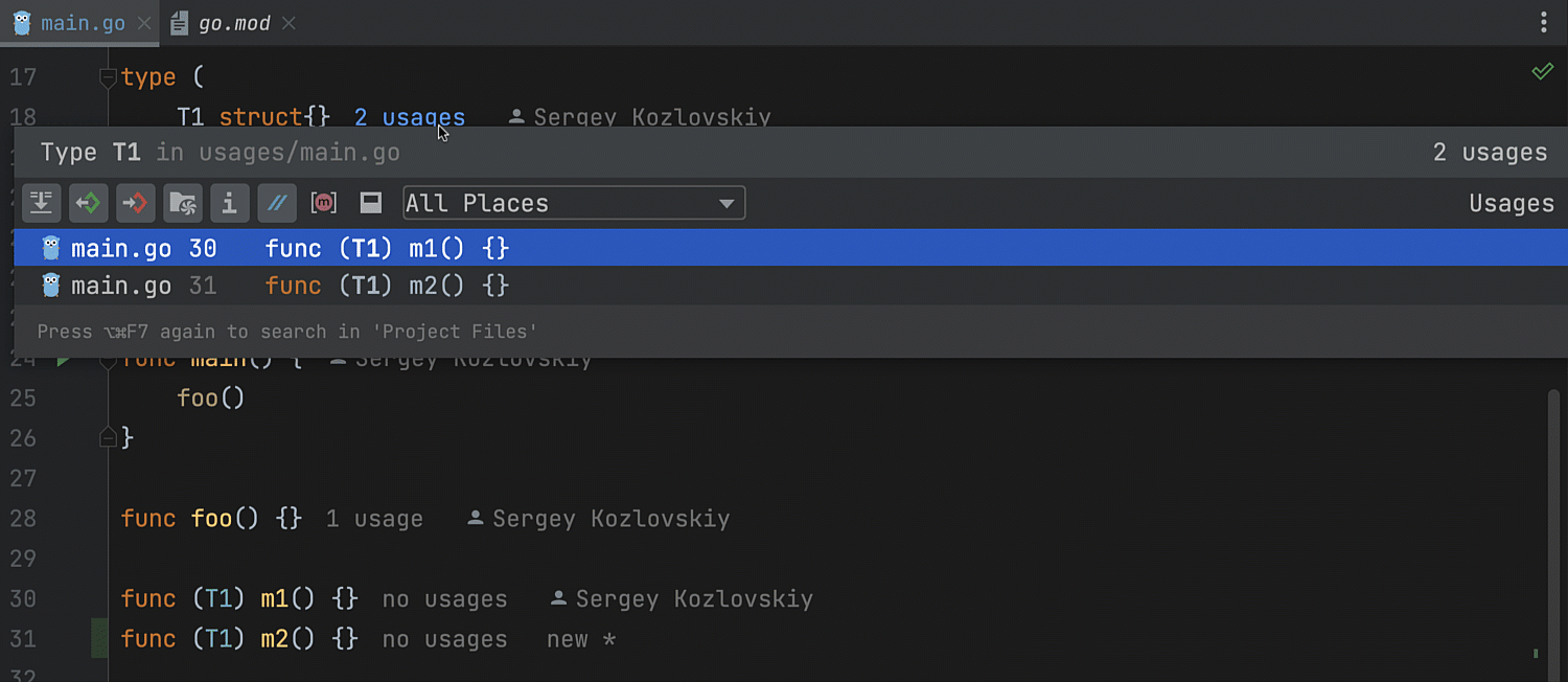 我们还引入了在所有函数和类型附近显示的用法,显示函数或类型在当前项目中被引用的次数。