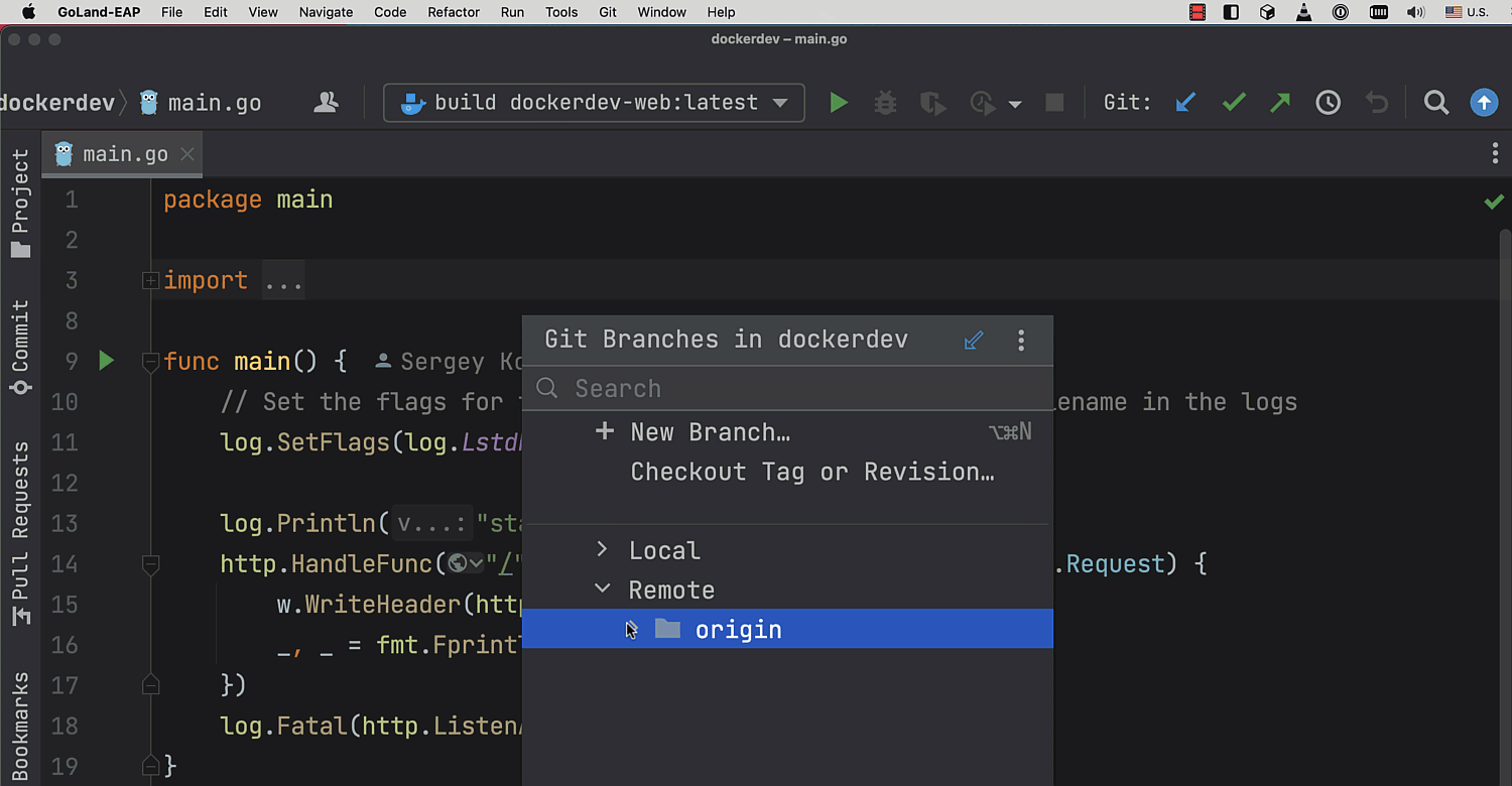 我们改进了 Branches(分支)弹出窗口的实用性。 例如,分支被分组并存储在可扩展列表中,导航更加轻松。