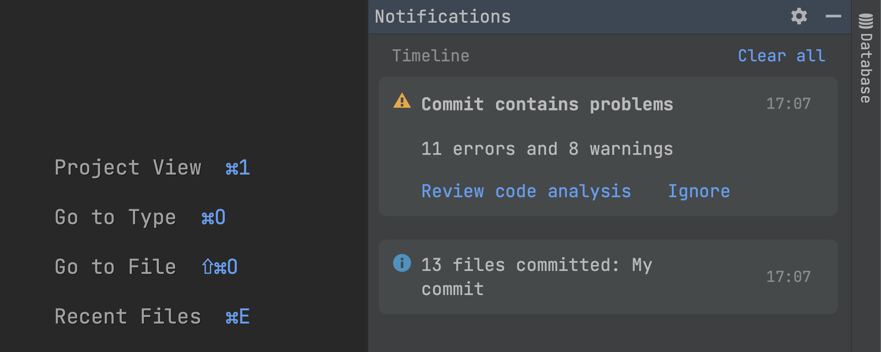 我们重做了 Git 和 Mercurial 提交检查的行为,旨在加快整个提交流程。 检查将在提交之后且推送之前在后台执行。