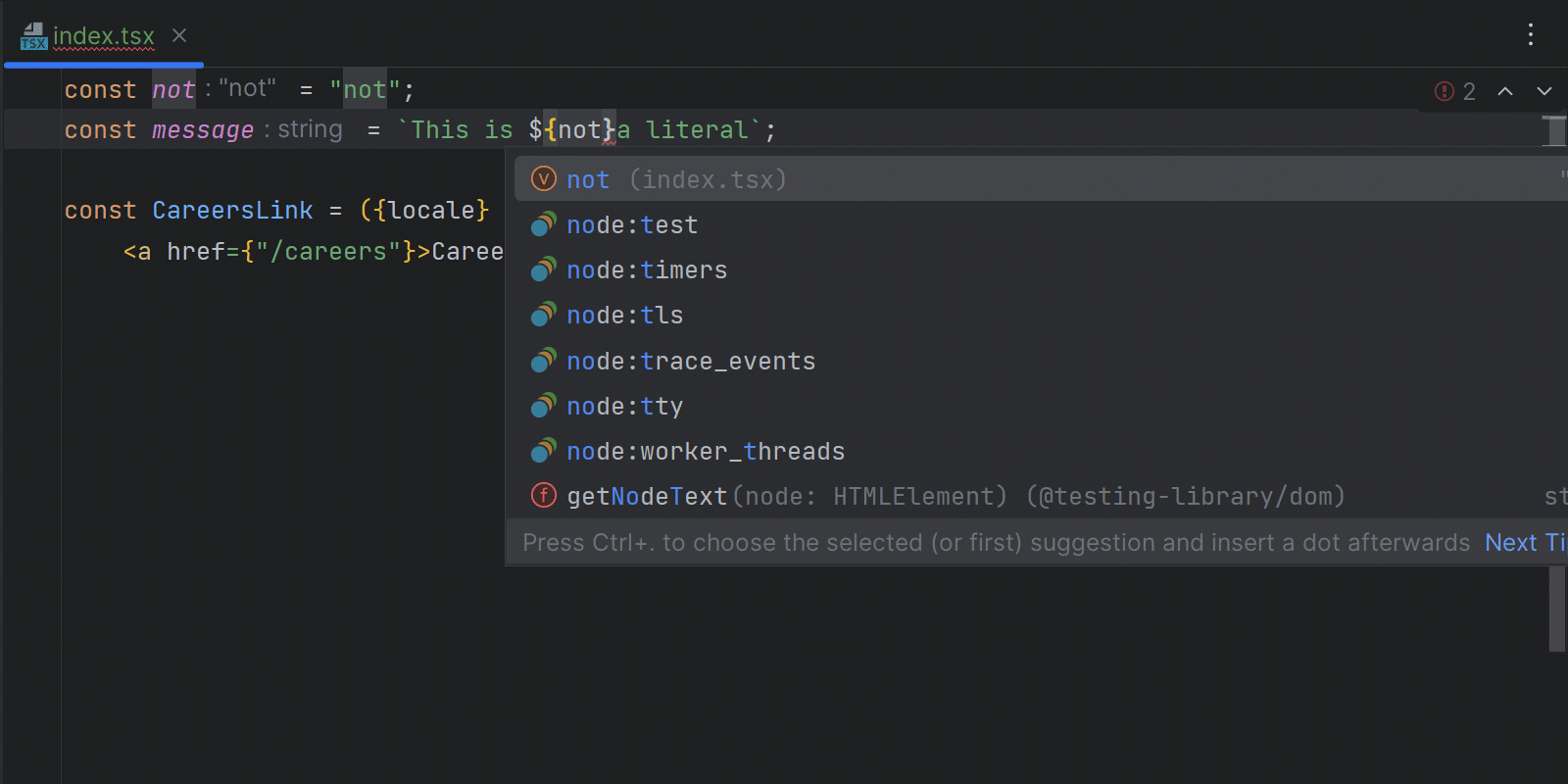 GoLand 在您输入 ${ 时会自动将带单引号或双引号的字符串转换为模板字面量。 这适用于原始字符串以及 JSX 属性。