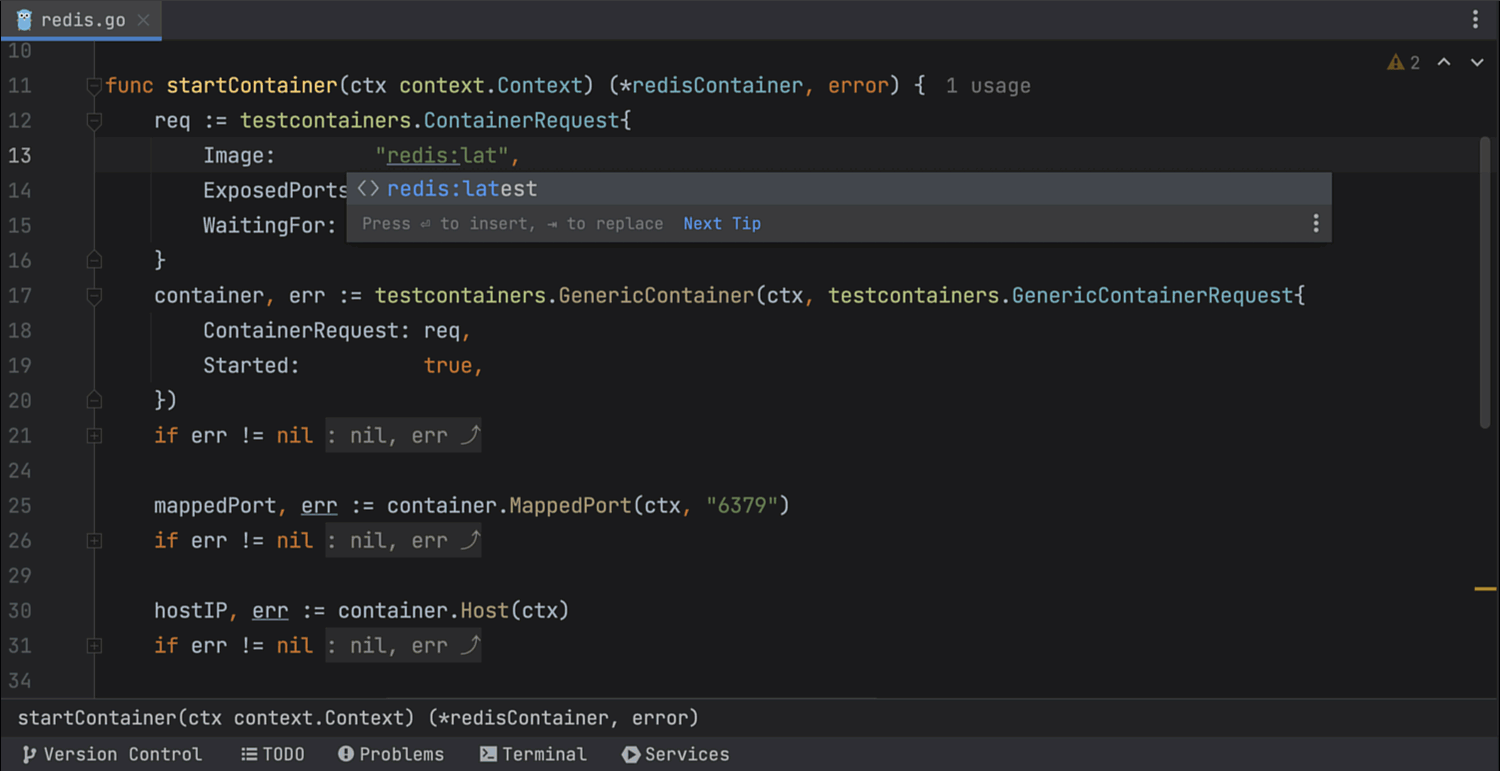 在这个版本中,我们为 testcontainers-go 软件包添加了容器名称的补全。