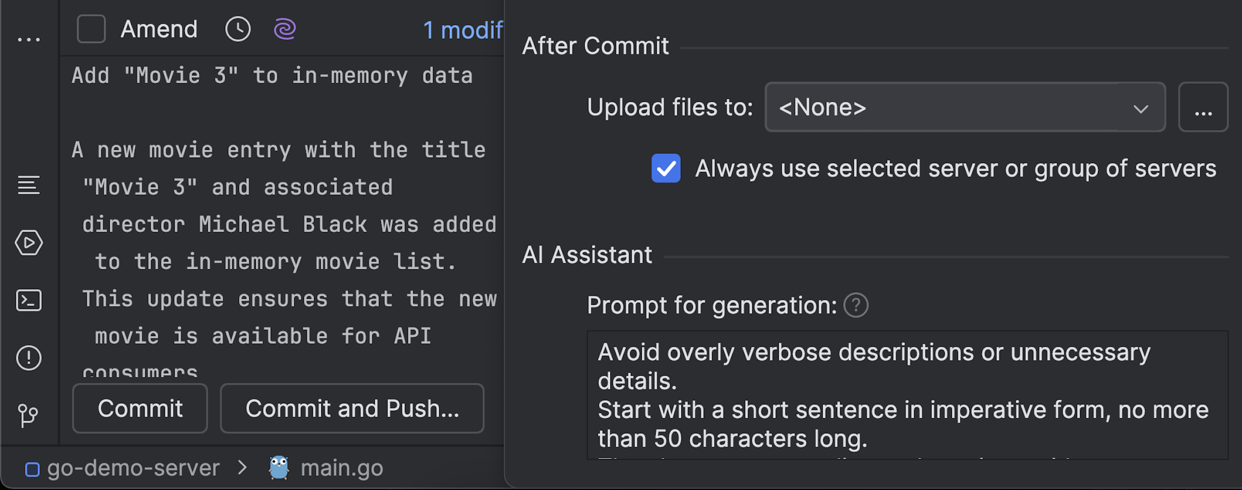 用户现在可以自定义某些 AI 操作(例如生成提交消息)的提示语。 这可以带来更个性化的结果。