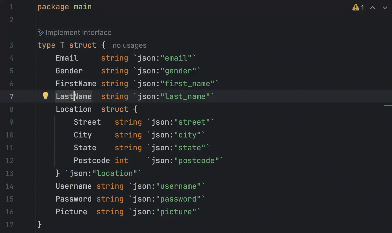 重命名结构体字段时,现在可以正确更新相应的 JSON 标记。 以前,如果重命名 Go 结构体中的字段,更改不会反映在其标记值中(例如 NewName string `json:"old_name"`),这可能导致字段名称和序列化输出不匹配。
