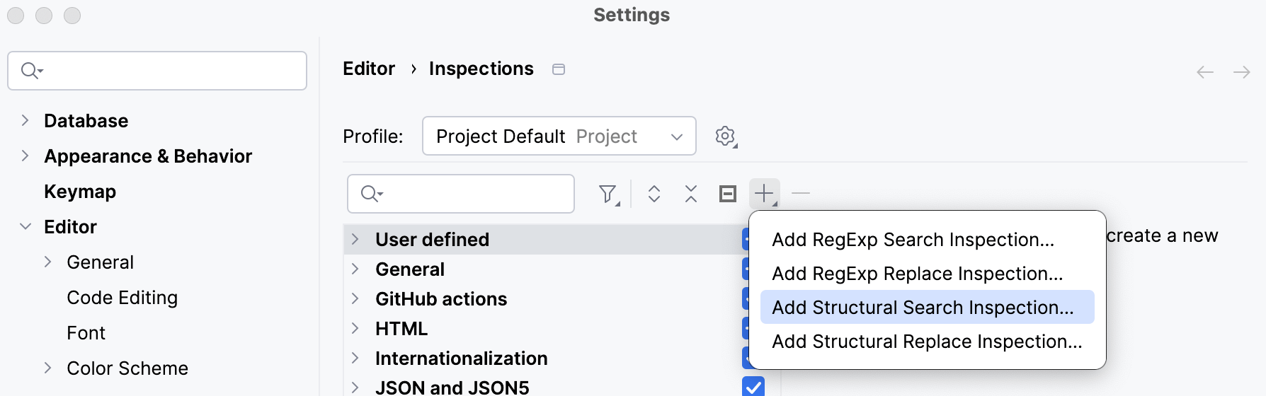 ),然后选择 添加结构化搜索检查… ,若您希望检查仅突出显示代码。 或者,单击 添加结构化替换检查… ,若您希望检查突出显示代码字符串并建议修复。
