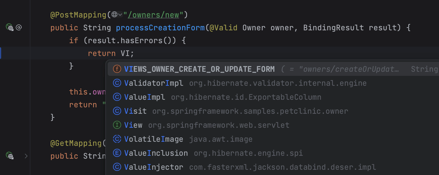 获得针对 Java 和 Kotlin 的一流 Spring 感知补全。