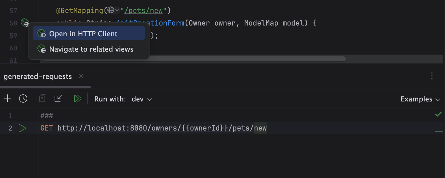 测试 Web 服务时,使用集成式 HTTP 客户端直接在编辑器中编写、编辑并执行 HTTP、gRPC、WebSocket 或 GraphQL 请求。