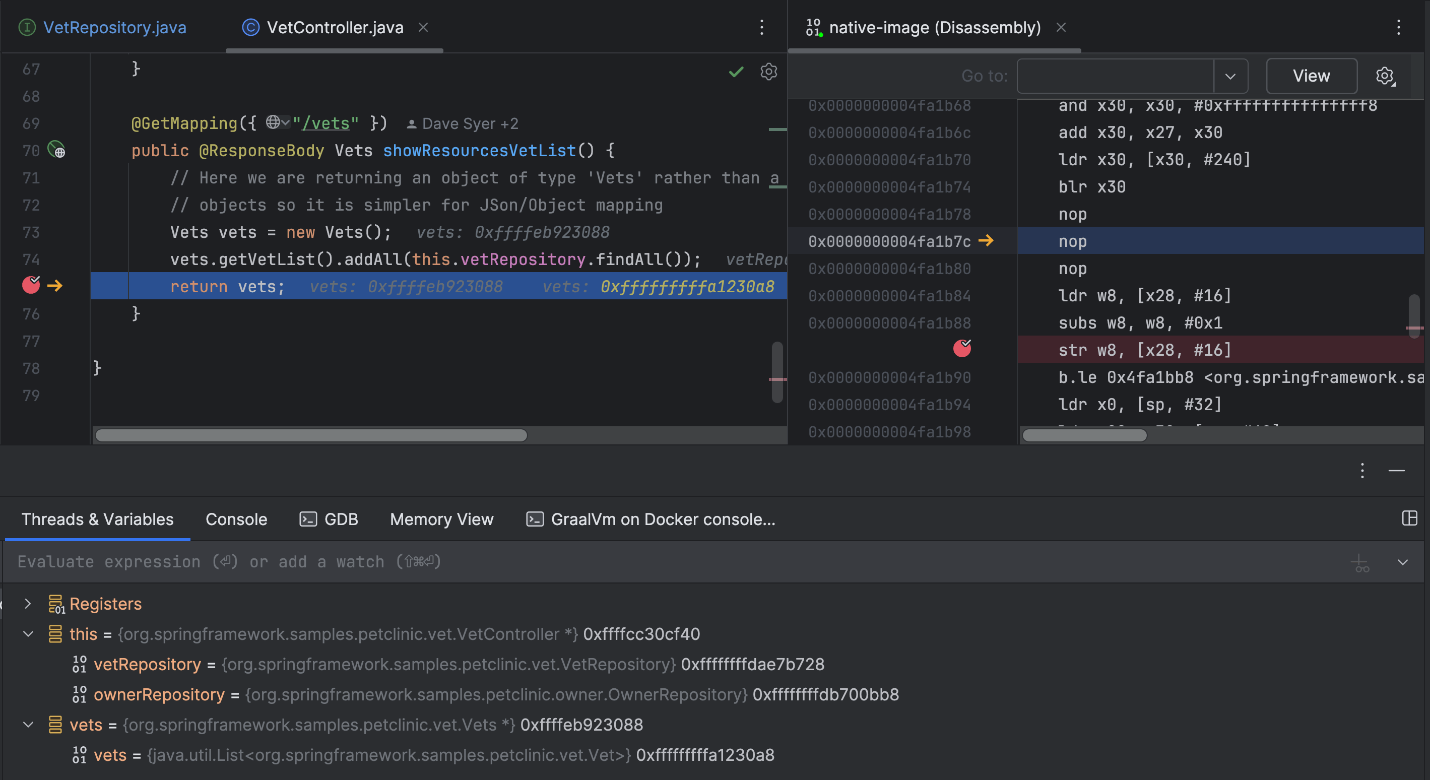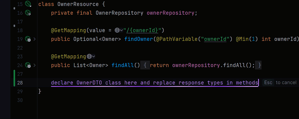 IntelliJ IDEA 2025.3 可以自动检测已为 Spring Data 仓库生成的实现,并直接在代码中显示相应查询,对此改进进行了增强。 您可以利用 IDE 导航至查询执行代码,以便设置断点和跟踪代码流。 您还可以直接在 IDE 中执行生成的查询,无需运行应用程序。