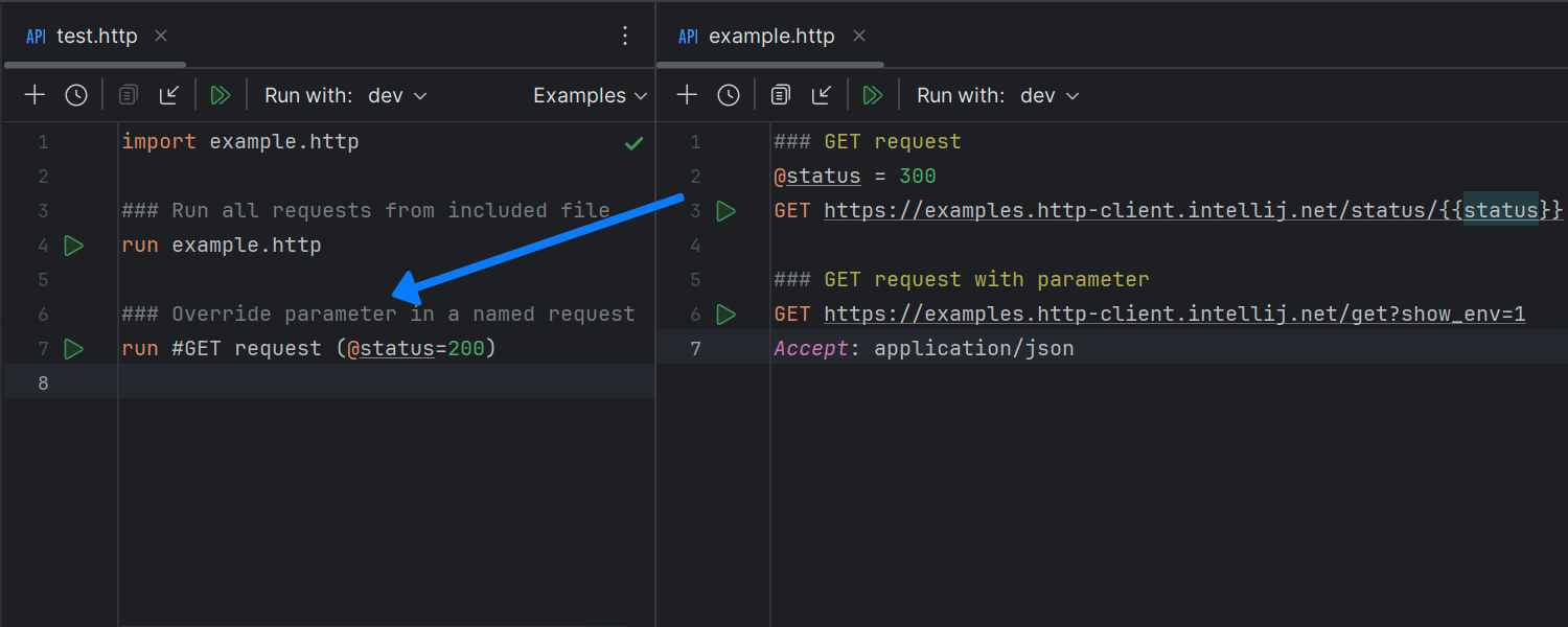 IntelliJ IDEA 通过验证版本格式、标记模糊或配置错误的端点和生成必要配置,让版本控制流程更流畅。 此外,HTTP 请求生成和客户端与服务器之间的导航也会考虑版本,确保所有内容保持同步。