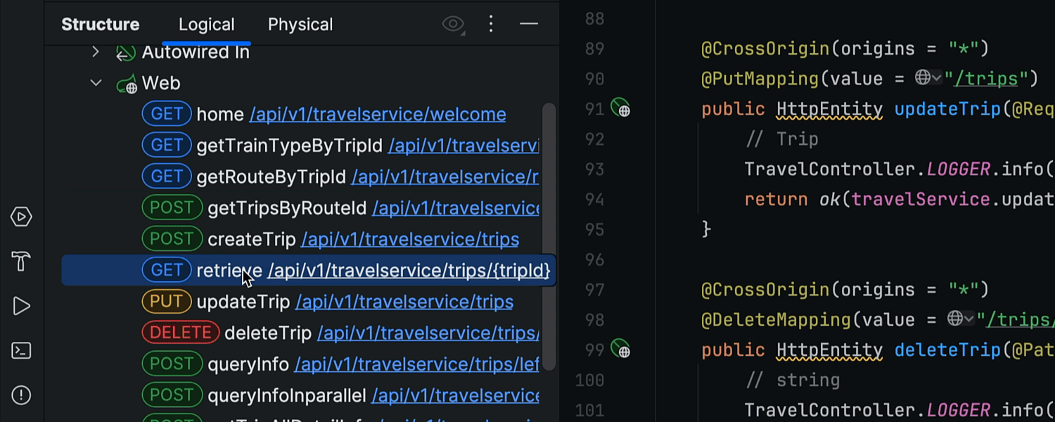 IntelliJ IDEA 2025.3 可以帮助您一直站在 Spring 生态系统开发的前沿。 对 Spring Framework 7 和 Spring Boot 4 中的最新改进提供一流的支持,在简化应用程序开发的同时,还能减少开发者体验中的障碍。 对 REST API 版本控制、编程式 Bean 注册和声明式 HTTP 服务客户端进行的改进能让您顺利完成开发工作、专注于您最重要的任务,无需费心进行设置。