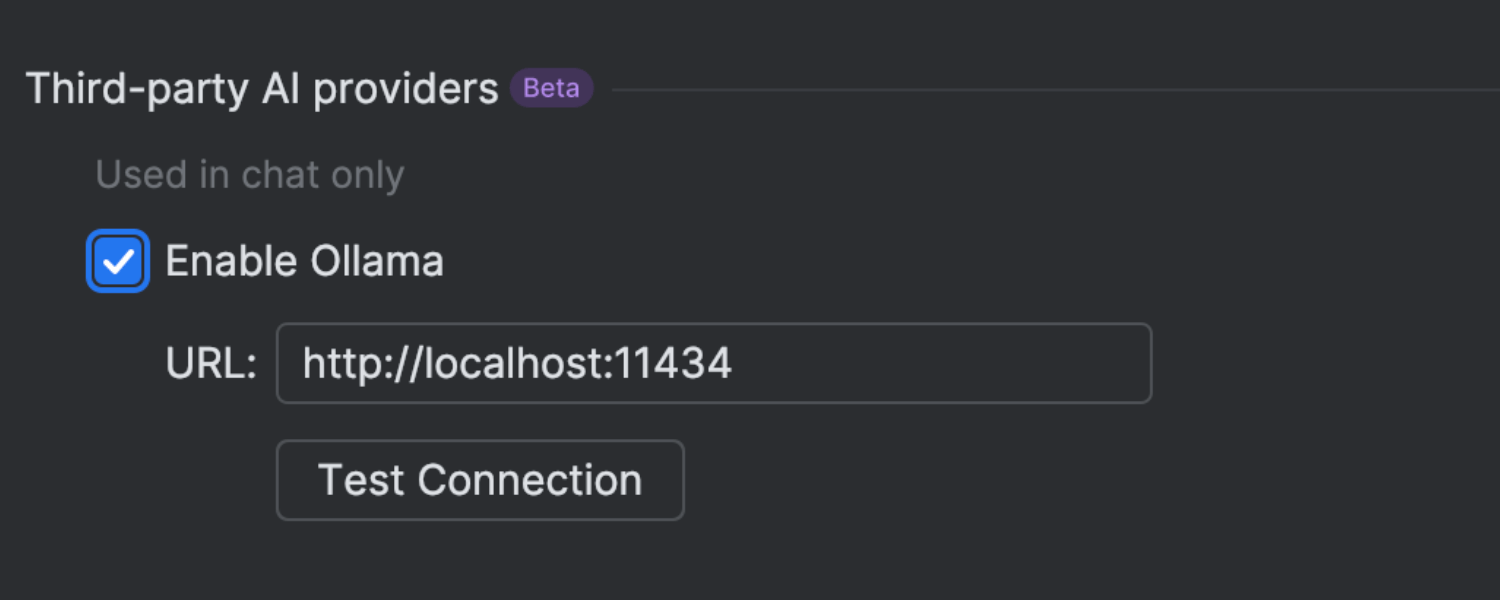 与 JetBrains AI 订阅(含免费层级)搭配使用时,此设置的功能尤为强大,可以提供增强型补全功能、额外的模型和奖励点数,同时仍允许您为聊天和智能体使用自己的密钥。