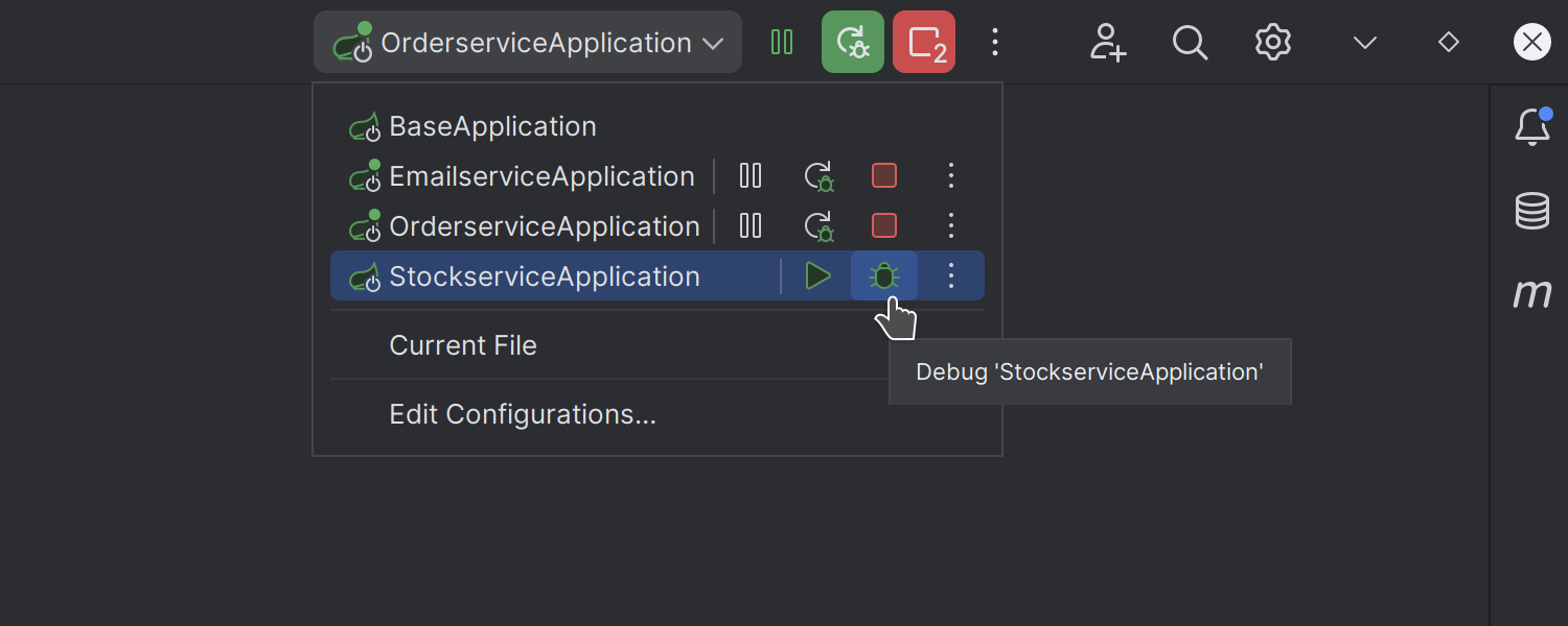 只需在调试端口打开的情况下启动应用,再通过 IDE 附加应用即可。 搞定了 – 一切准备就绪。