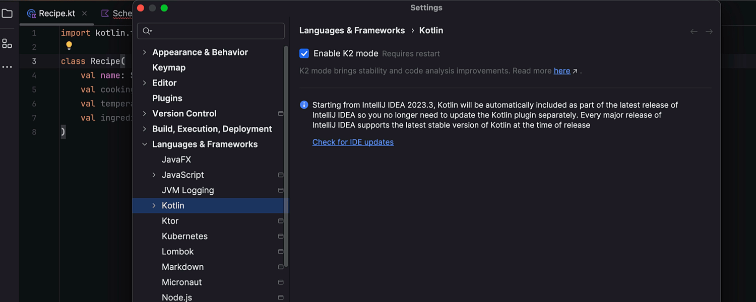 您可以始终依赖 IntelliJ IDEA 为您日常使用的最新版本的语言、工具和框架提供支持。 除了 Java 25 和 Spring 7 等重大更新外,IntelliJ IDEA 2025.3 还引入了对以下功能的支持: