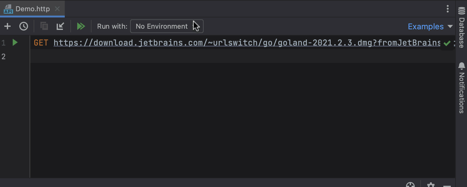 我们在 HTTP 客户端上实现了一些 UI/UX 改进。 首先,我们引入了一种使用装订区域图标选择运行环境的便捷方式。 要启用此功能,请从 Run with(运行方式)组合框中选择 Select Environment Before Run(运行前选择环境)选项。 另外,新增的进度条改进了响应视图,您可以跟踪下载过程。