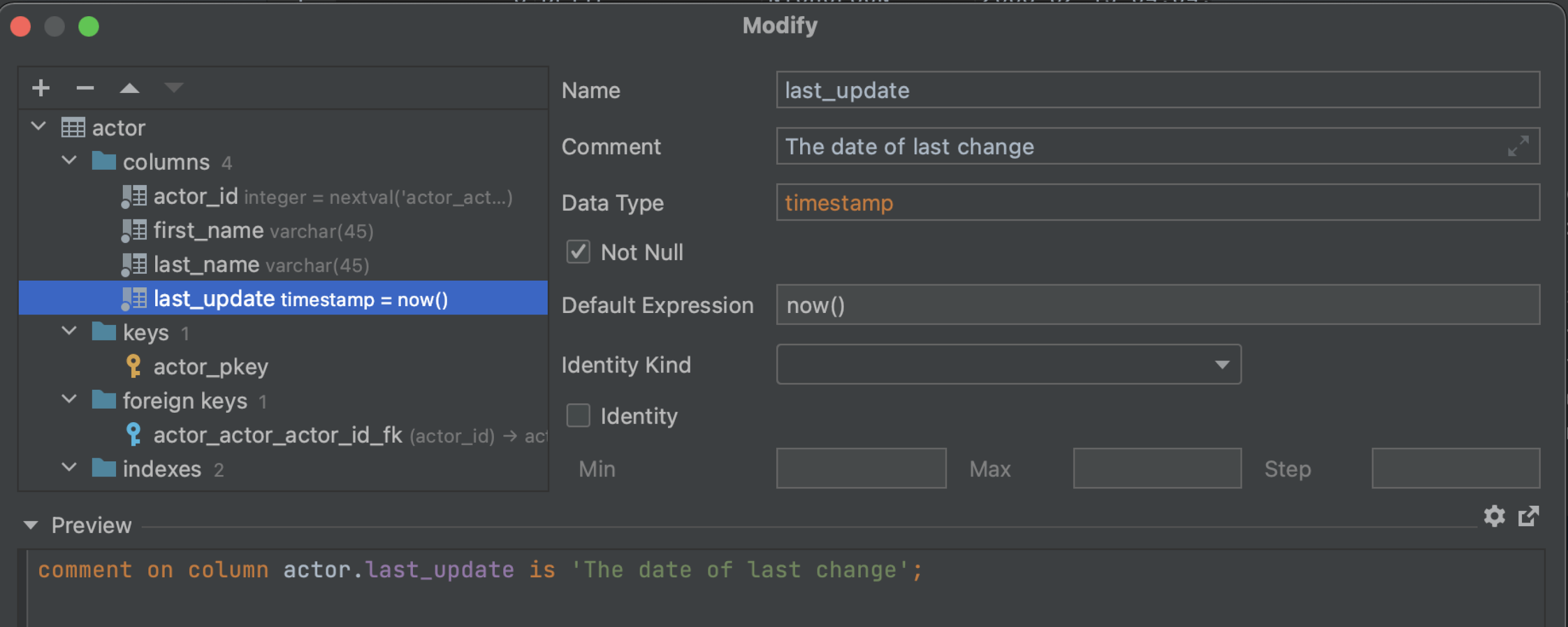 Modify(修改)对话框的新 UI 已成为默认选项。 从 2022.2 版开始,可以使用新 UI 添加和编辑表的所有子对象。 上下文菜单将继续提供旧 UI。