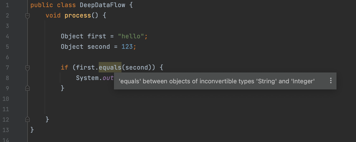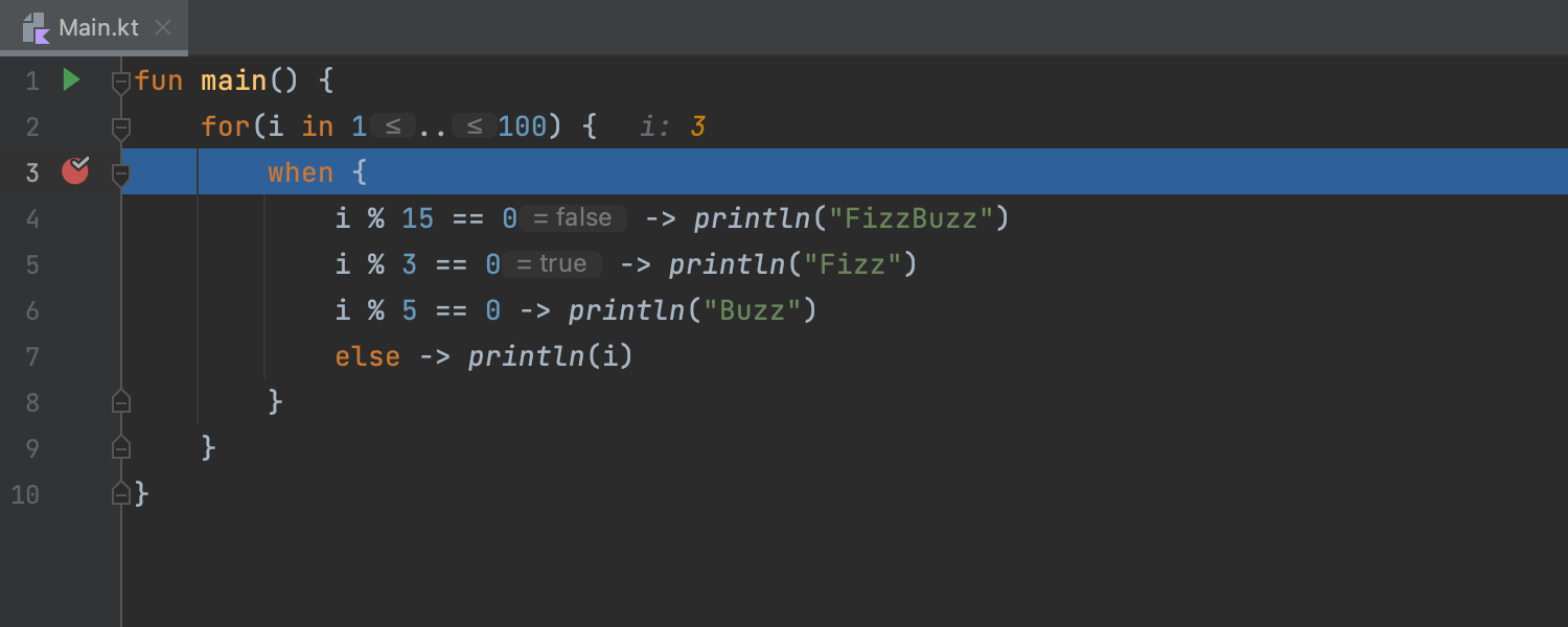 我们已将 Kotlin 调试器与数据流分析功能集成,因此现在它可以在 DFA 提示中显示哪些条件为 true 以及哪些分支将被执行。 先前,此集成仅适用于 Java,而现在也支持 Kotlin。