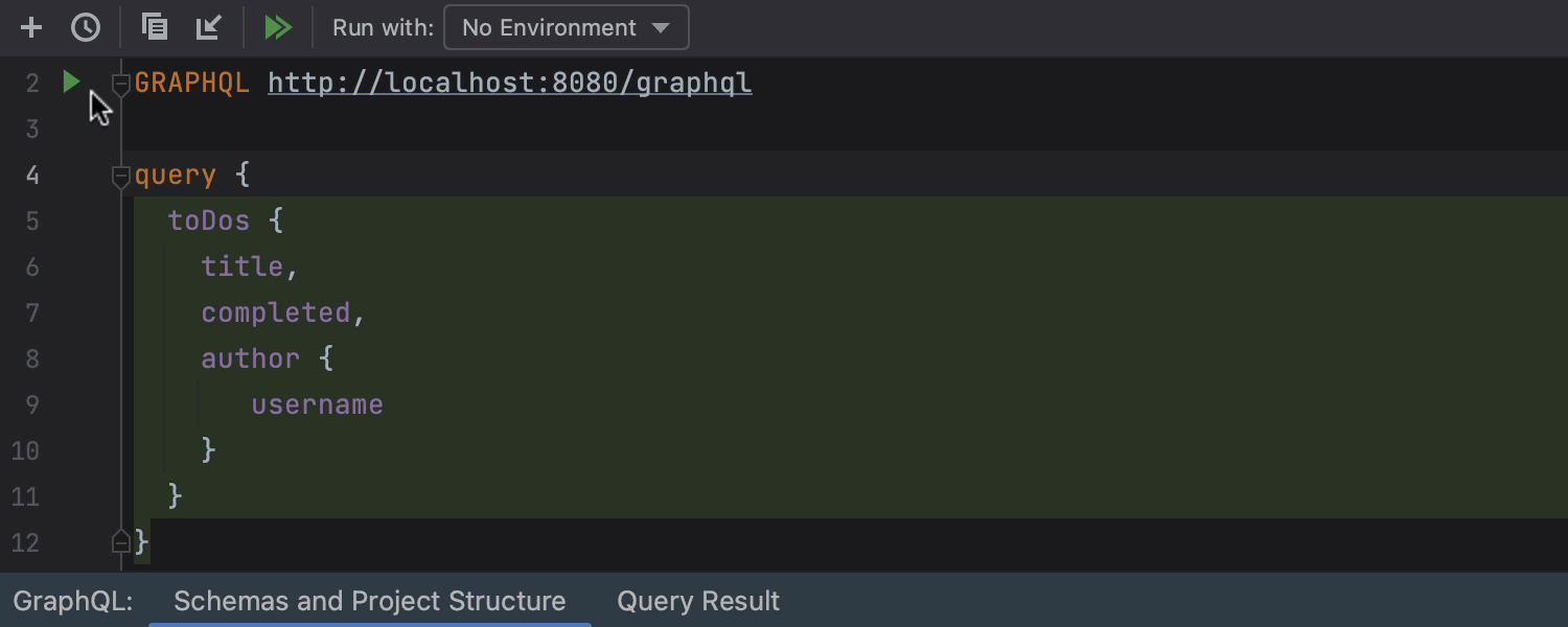 IntelliJ IDEA Ultimate 现在可以原生通过 HTTP 和 WebSocket 协议发送 GraphQL 查询。 对于 http:// 和 https://,使用的是简单的 HTTP 请求,ws:// 和 wss:// 则被委托给 WebSocket 执行器。