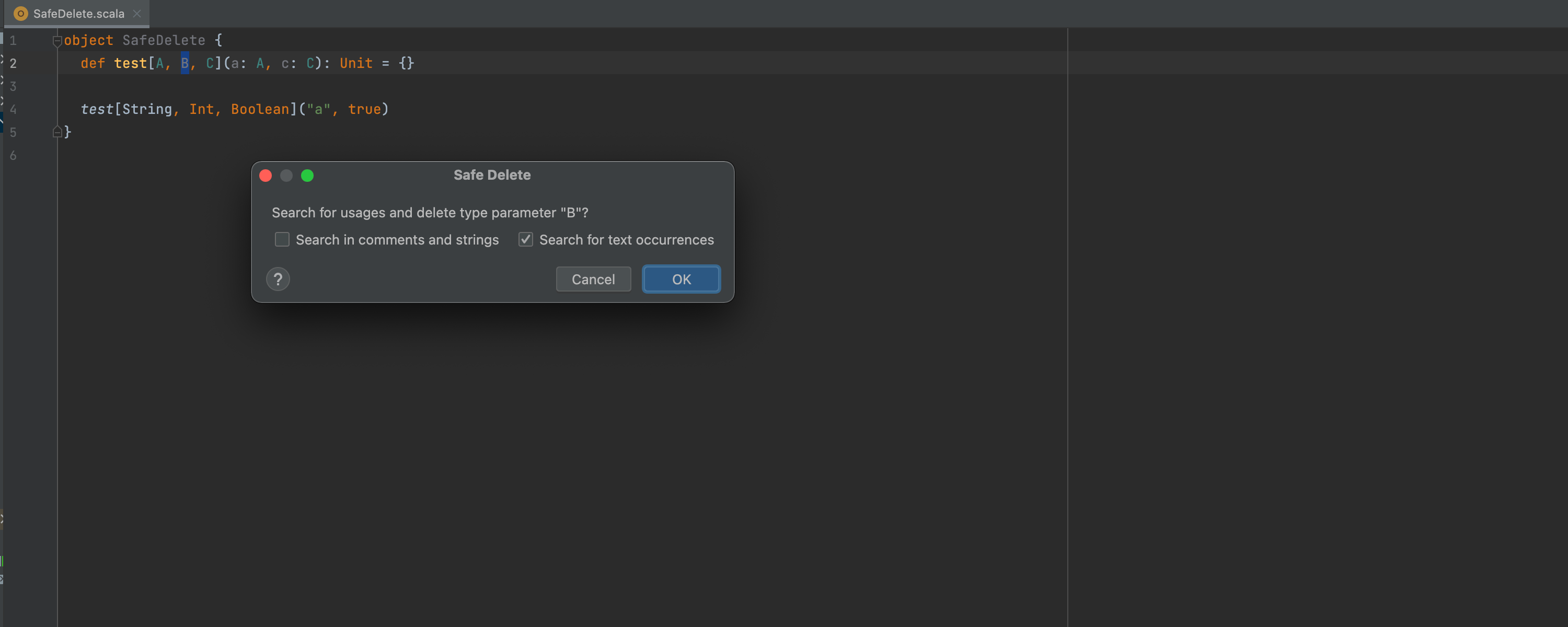 Safe Delete(安全删除)操作可以从定义及其所有调用中移除一个元素。 此操作现在也适用于类型形参。
