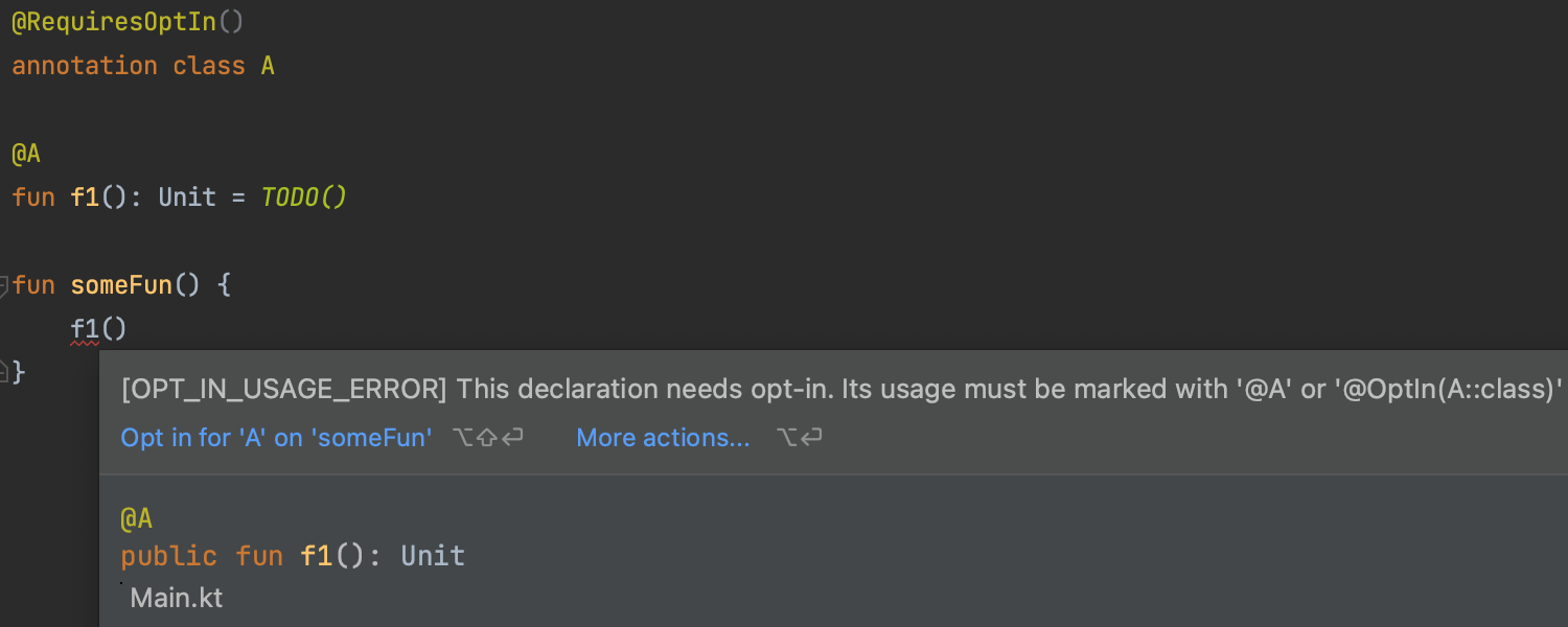 我们添加了对最新语言版本 Kotlin 1.7.0 中引入的功能的支持。 IDE 现在可以正确呈现绝对不可空的类型,并提供选择加入要求的实用检查。