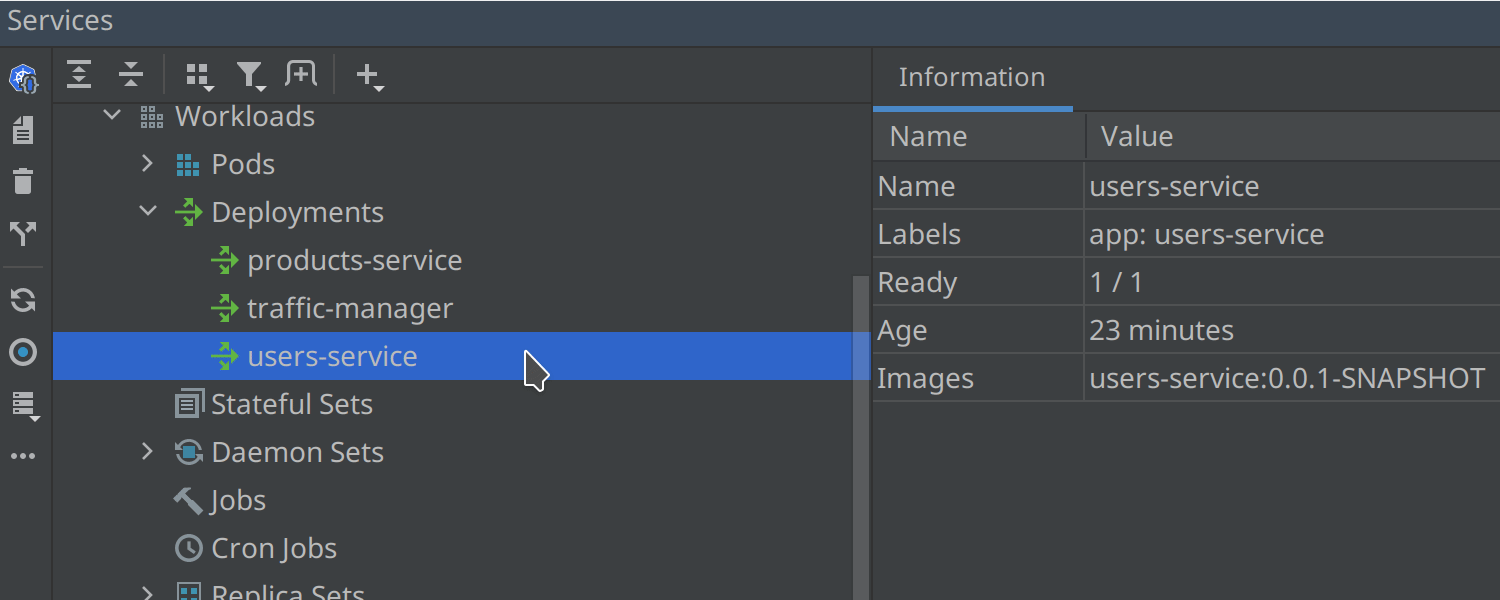 IntelliJ IDEA 2022.2 的 Kubernetes 插件提供了与 Telepresence 工具的集成,以拦截来自 Kubernetes 集群中服务的 HTTP 请求,并将其路由到本地运行的服务。 您可以由此更轻松地调试这些服务,并仅在本地运行所需服务子集。