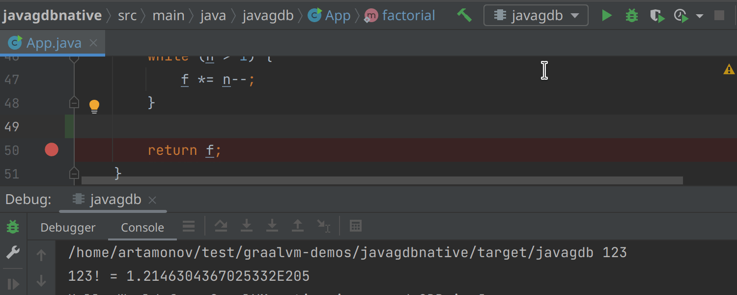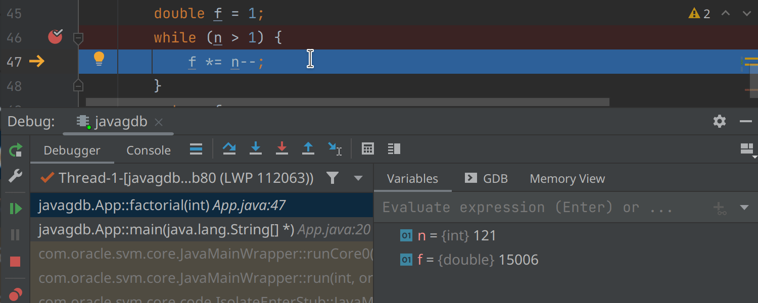 IntelliJ IDEA 2022.2 现在可以协助调试 GraalVM 原生映像二进制文件。 您可以将调试器附加到任何基于 GraalVM 的可执行文件,也可以使用附加的调试器启动应用程序。 将自动为 Maven/Gradle 项目创建相应的运行配置。 此集成仍处于实验性阶段,需要安装 GraalVM 的开发版本和此插件。