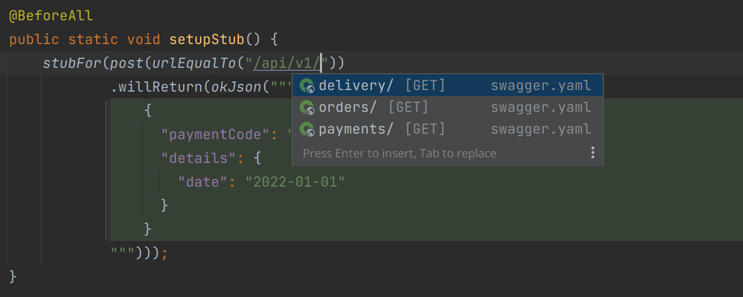 IntelliJ IDEA 2022.2 使用 Spring WebTestClient、RestAssured、WireMock 和 MockServer 等流行 Java API 自动高亮显示测试中的 JSON/XML 体。 因此,这些数据片段具有更好的可读性并且更易编辑。 您还可以在测试中的这些位置使用 URL 补全和导航到声明。