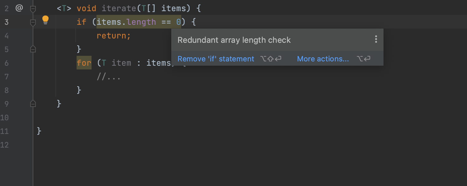 在 IntelliJ IDEA 2022.3 中,意图操作的预览功能现在默认开启,让您可以立即查看应用 IDE 建议后代码将如何变化。 打开可用意图操作列表并将鼠标悬停在不同选项上时会显示预览。 您可以在意图操作列表打开时按 Ctrl+Q 禁用预览功能,或者在 Settings/Preferences | Editor | General | Appearance(设置/偏好设置 | 编辑器 | 常规 | 外观)中管理。