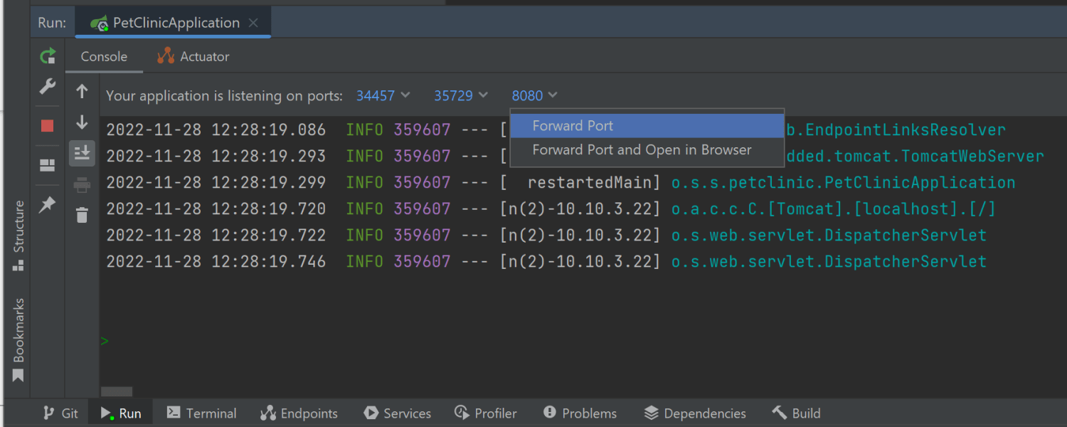 端口转发是远程开发的重要组成部分。 为此,我们重做了端口转发界面,使其更加实用。 它现在具有开放端口及其状态的全面概览,以及添加或移除端口的选项。