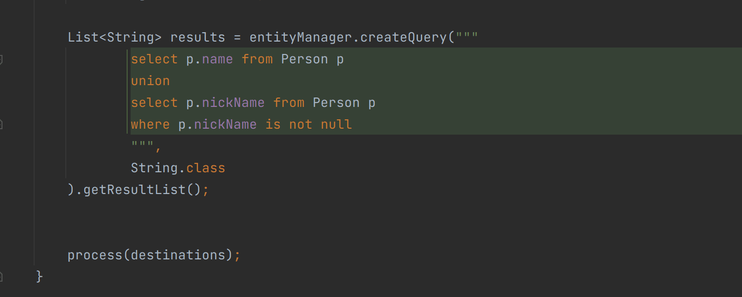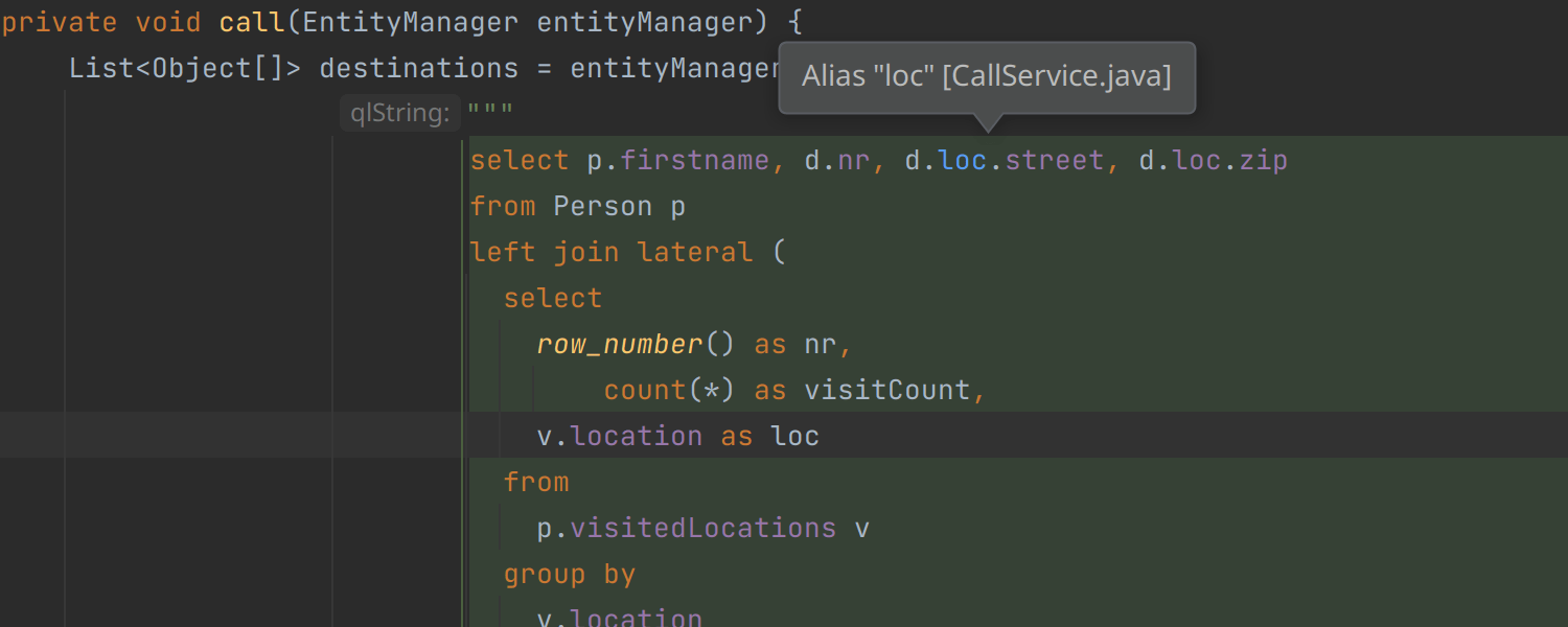 IntelliJ IDEA Ultimate 2022.3 为 JPQL 语言改进了代码洞察功能,支持最新的 Hibernate 6.1 API,包括集合运算(union、intersect 和 except)、筛选运算、子查询选择和集合聚合。