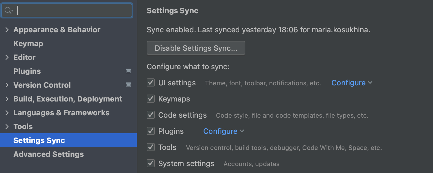 新的 Settings Sync(设置同步)插件现在可用于所有基于 IntelliJ 的 IDE(Rider 除外),包括免费版和付费版。 新的解决方案能够同步来自平台、捆绑插件和一些第三方插件的大部分可共享设置。 请注意,我们将停止支持旧的 IDE Settings Sync(IDE 设置同步)插件并取消捆绑 Settings Repository(设置仓库)。 有关新的 Settings Sync(设置同步)插件和迁移过程的更多信息,请参阅本文。