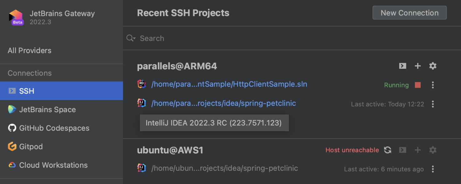 对 ARM64 后端的需求正在增长,事实证明这是最受期待的功能之一。 您现在可以在 ARM64 机器上托管 IntelliJ IDEA 项目,并从任何笔记本电脑远程处理。 使用轻量级客户端时,所有处理都将在 ARM64 机器上完成。